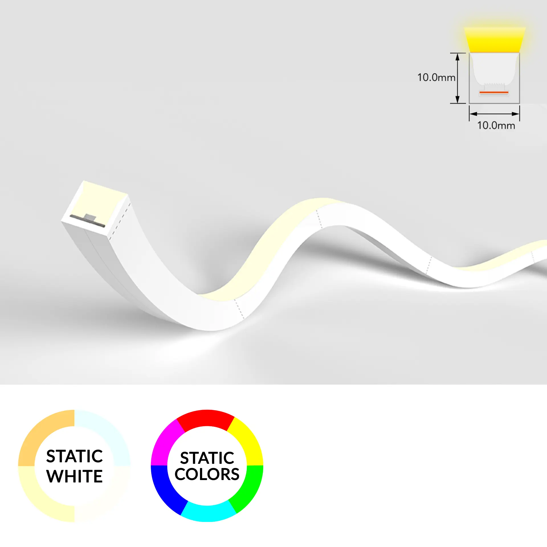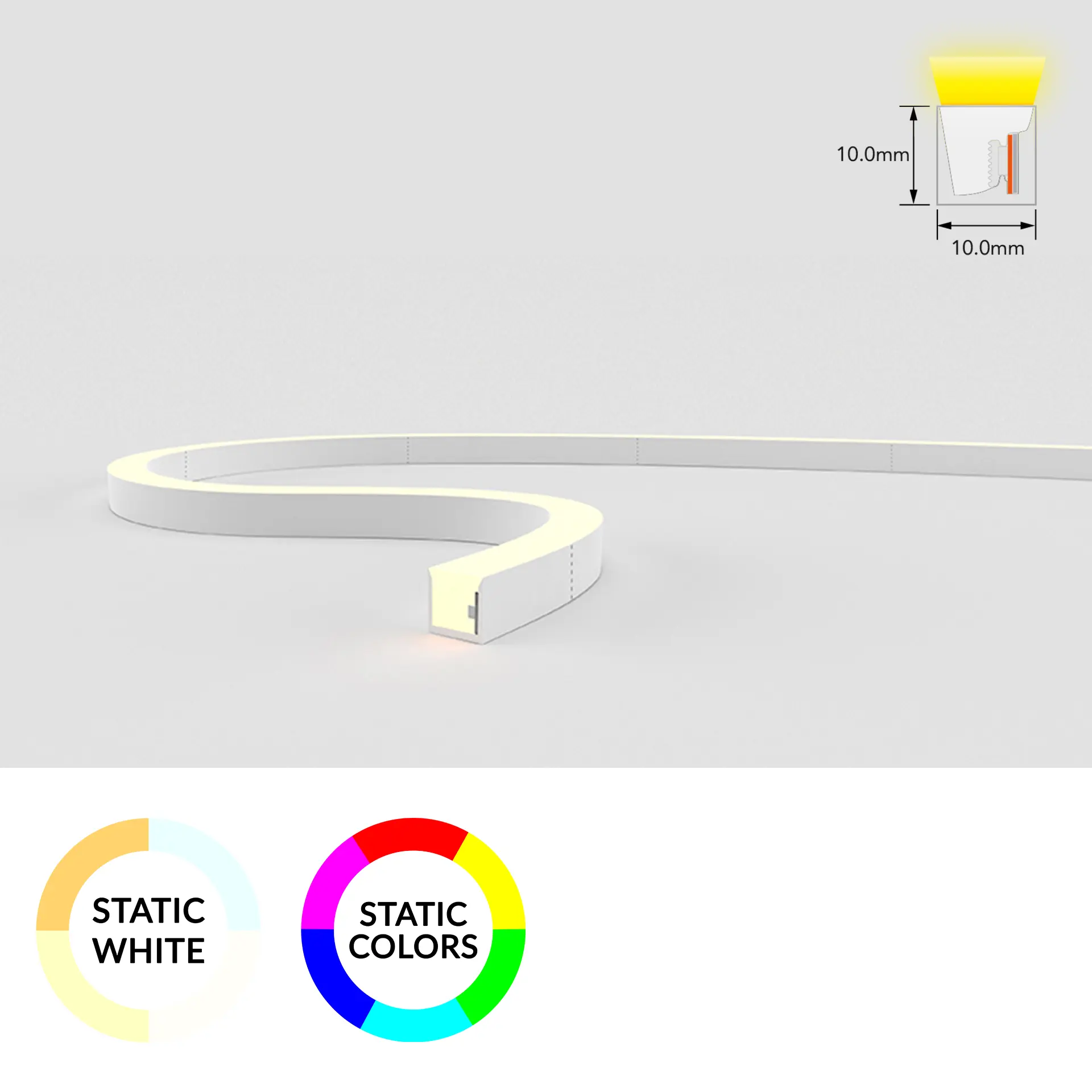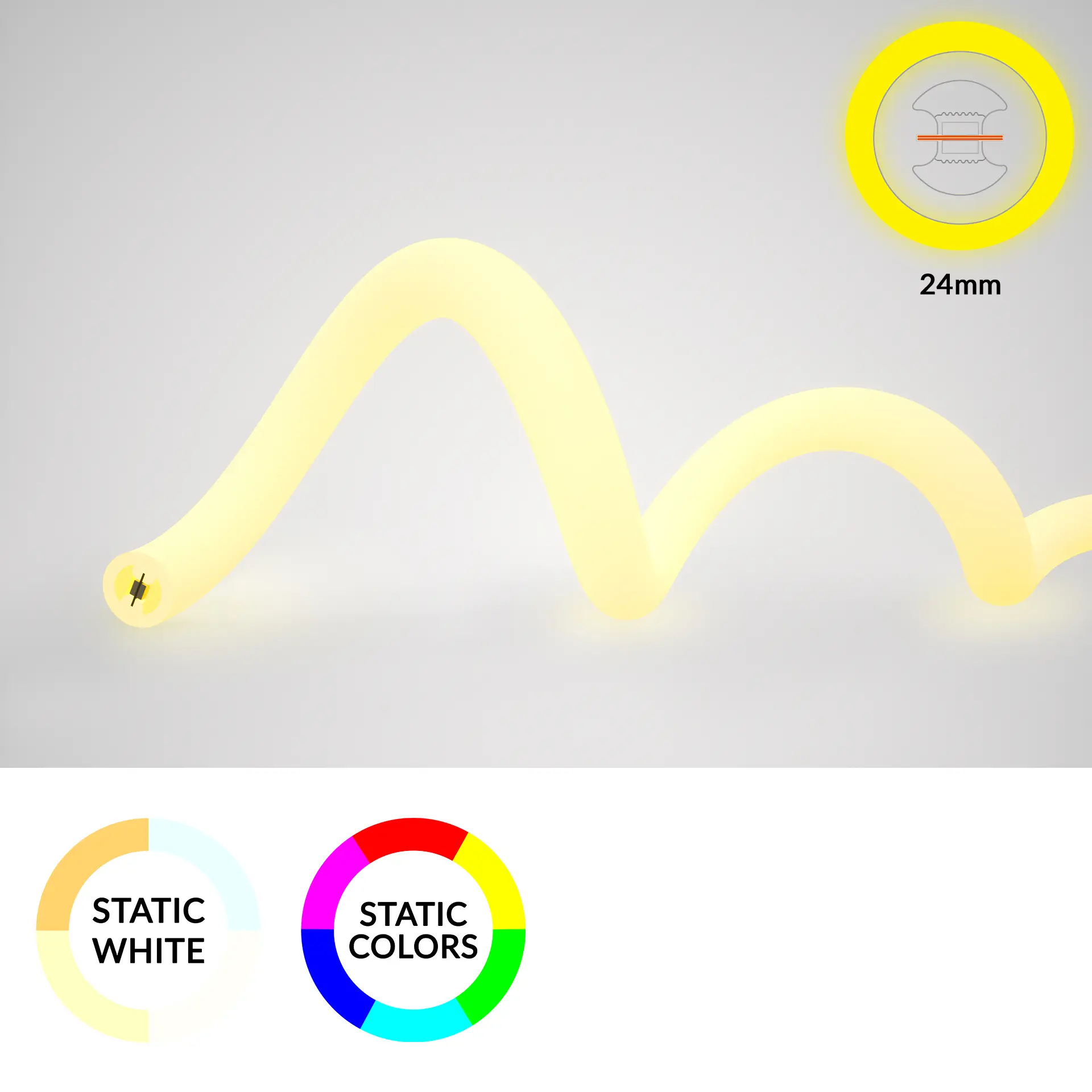 A versatile LED neon flex designed for gentle curves and soft bends. Its durable silicone housing and IP68 rating make it suitable for indoor and outdoor applications requiring smooth, continuous light.