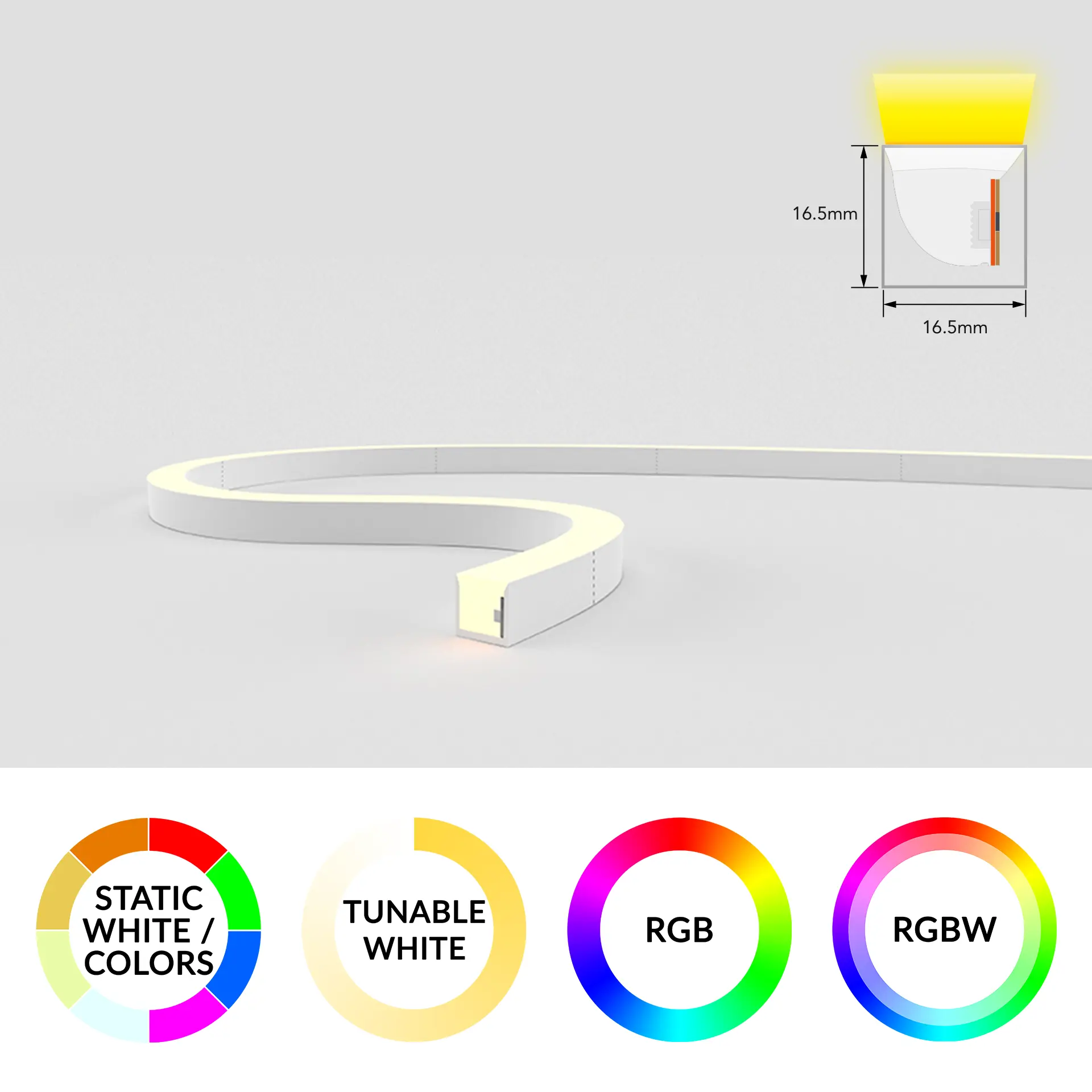 Offers higher lumen output in a flexible neon design. Its robust silicone housing ensures durability for demanding indoor and outdoor environments.