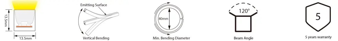 The NeonFlex Mono Vertical Bending 24V LED Strip delivers bright, even illumination with 128 LEDs per meter. Its slim vertical bending profile adapts to creative layouts while keeping energy use low at 8W/m. IP68 protection ensures durability for both indoor and outdoor projects.