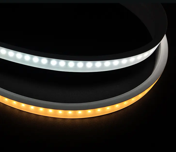 The Tunable White LED strip delivers adjustable lighting from warm to cool tones, providing versatility for modern interior and architectural applications. Its vertical bending design ensures smooth integration along curves and contours, while maintaining even brightness. The tunable white capability allows designers to create the perfect ambiance, whether emphasizing functional lighting or enhancing mood and aesthetics.